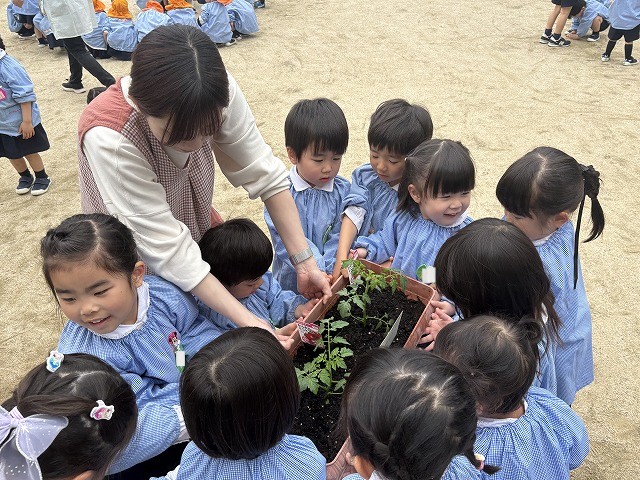 - トマトの苗植え入園式を終え、クラスのお友だちがみんな揃いましたね。 今日はクラスのみんなでトマトの苗植…