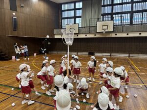 今日は、今まで練習してきたことを思い出しながら、白ゆり館で運動会の総練習を行いました。