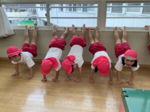今回の逆立ち大会は、前回の時よりもお友だちが多く残れていました!よく頑張りました👐