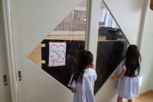 中の様子が気になる子どもたち。待ち遠しいようです。