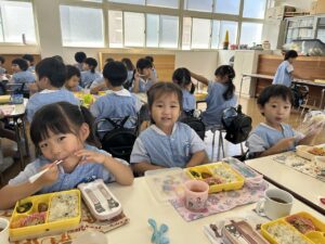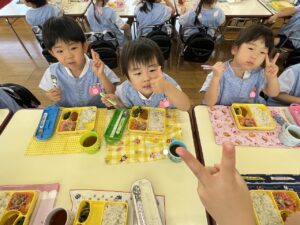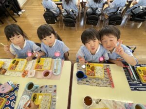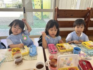 年少さんやオレンジさん、二歳さんのお友だちと食べる時間も楽しいですね😊