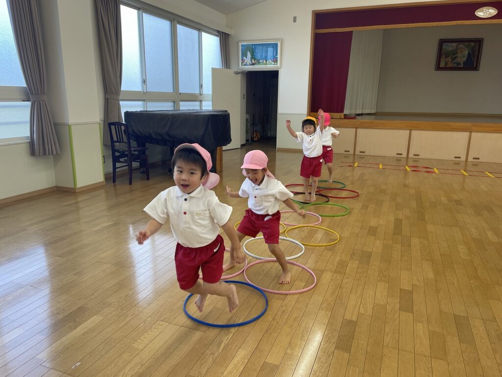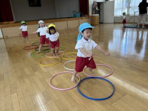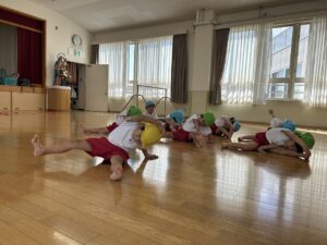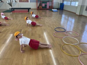 今日、年少さんは体育を行いました。