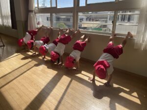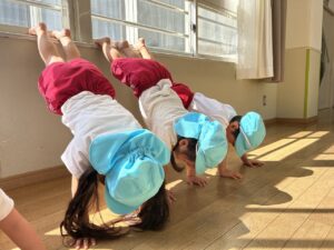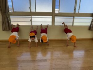 前回よりも長い間できたお友だち、最後までずっと逆立ちできたお友だち、一度落ちても、もう一度挑戦しようとするお友だち、今回もよく頑張りましたね!