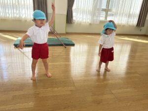 最初にどんな風にするのかみんなで振り返りました。「これ、できるよ!」というお友だちがお手本を見せてくれましたよ!