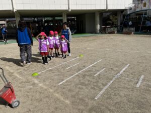 内容・・・園庭 25m走・ボール投げ・ボールキャッチ
