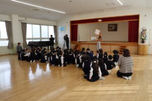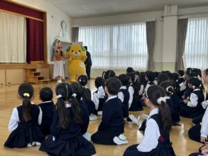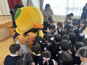 今日は、かんきつ出前授業があり、ロザリオ幼稚園にみきゃんが来てくれました。