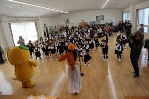 クイズの後は、「愛媛のかんきつ旬!旬!音頭」を踊りました。お姉さんの真似っこをして一生懸命、楽しく踊ることができましたね。