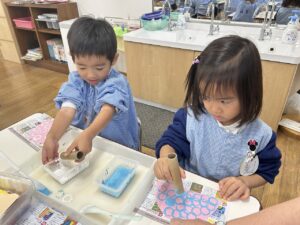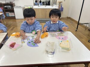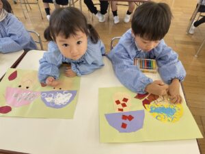 お友だちと確認し合いながら、綺麗に貼ることができました✨