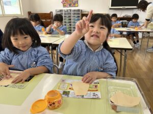 「のりってこのくらいの量でいいんだよね!」「端っこまで塗るよー」