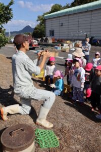 着くと、愛媛大学農学部付属農場の方が待ってくださっていましたね。そして、はさみの使い方や注意することなどについて教えてもらいました。