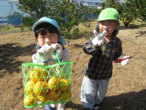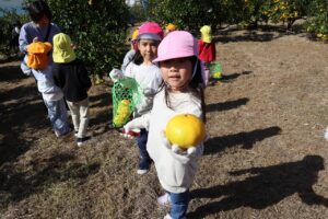 帰りのバスでは、子どもたちが「みかん2つ食べた!」「甘かった~」などお話してくれました。