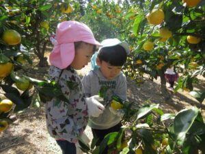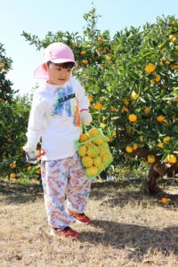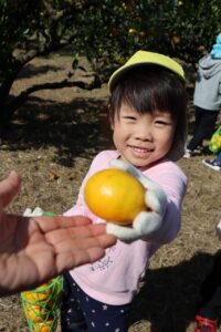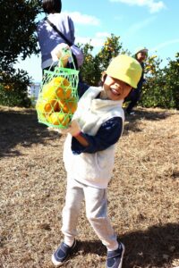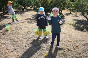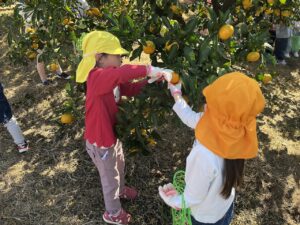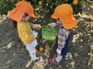 子どもたちは、2人1組になってはさみを持つ人とカゴを持つ人とで交代をしながらみかんを採りましたね!