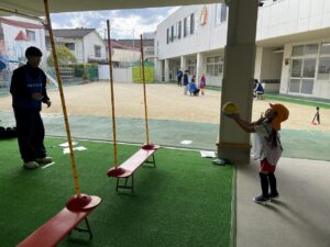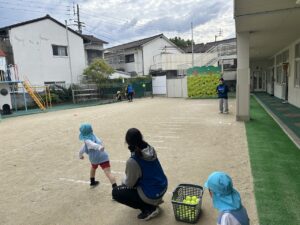 先日の野球教室で教えてもらったことを思い出して、ボール投げでは遠くに飛ばすことができましたね!