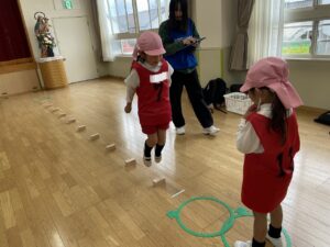 幅跳びや25メートル走なども行い、スタンプラリーカードにはシールがたくさん集まりましたよ。