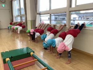 ブリッジにも挑戦しましたね!あと少しでできそうなお友だちが多かったですね👌