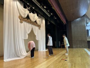先生たちは明日に備えて舞台や衣装の準備を行いました。