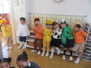 一学期から練習を頑張ってきた年長さん。真剣な表情で堂々と自分の役を演じる姿はとてもかっこよかったですよ!