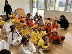 年中さんは、イエス様のご誕生の場面にふさわしい動物を探すオペレッタをしました。