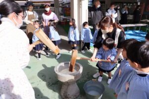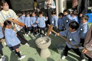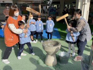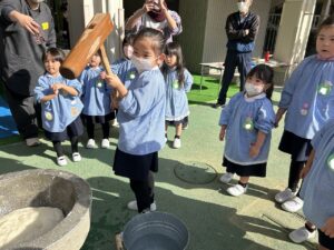 「よいしょ!よいしょ!」と大きな掛け声をしながらお餅をつきました。