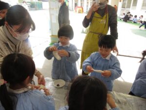 まだ温かいお餅をころころと上手に丸めることができましたね!