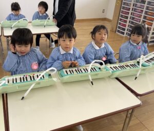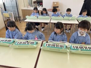 鍵盤ハーモニカでは、まず階名で歌えるように練習してから指が動くように指の運動を行いました。