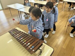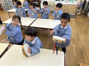 楽器紹介では、みんなで楽器の名前を覚えて実際に楽器を鳴らしてみました!
