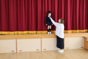 年中さんは年少さんの隣に並び、来年度から始まるお世話係に向けて気合十分です☆