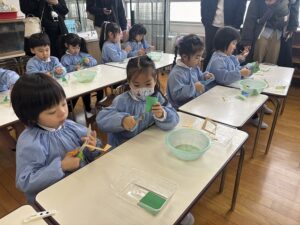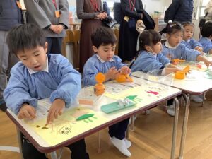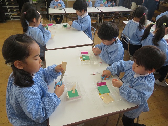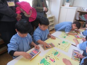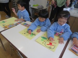 3学期に入って、少しずつ年長さんになる準備を始めている年中さん。今回の参観日ではカレンダー制作をしました。