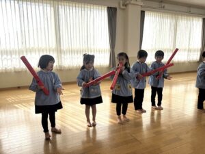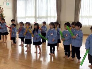 ごんべさんの赤ちゃんの手遊びでは、「心唱」に挑戦しました。声には出さずにお心の中で歌いながら、ぴったりと動きを揃えることができました。