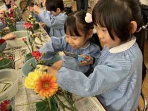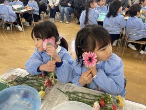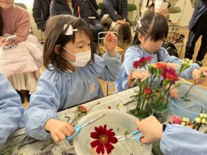 年少さんや年中さんも部屋に飾られた花を見て、うっとりしていましたよ。