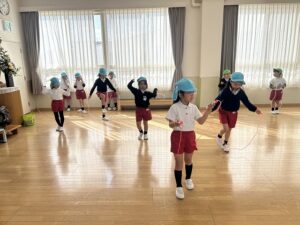 次回の体育が幼稚園最後の体育です。次回も縄跳びなのでぜひ今日教えて頂いたことをお家や外遊びの時間に練習しておいてくださいね!