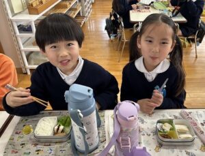 たくさん遊んだ後は一緒にお弁当を食べました。