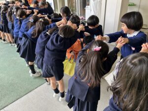 最後はトンネルを作ってお見送りです。交流会もこれで最後。とっても素敵な思い出を作ることができましたね。