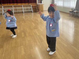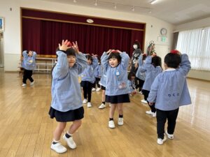 まずは、「ちょっとだけ体操」と「のーのののせる」をしました。参観日でもやりましたね!
