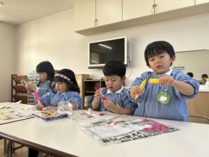 本日、凧揚げを持ち帰っております。お家でも遊んでみてくださいね!