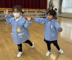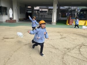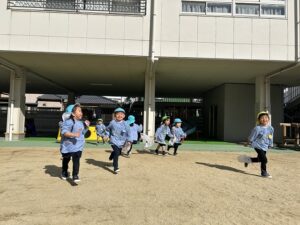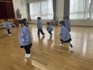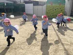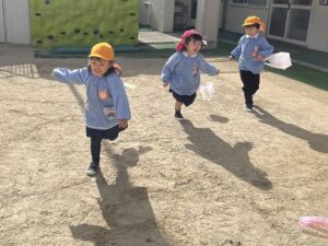 お友達や先生と紐の持ち方を考えたり、たくさん走ったりして諦めずに挑戦しました。