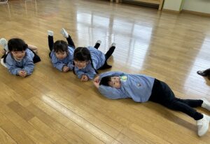 ピアノの音をよーく聞いて、ストップしたり寝転がったり、、、とっても上手にできました!