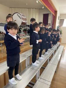 二歳児、満三歳児も音楽発表会に向けて毎日練習に取り組んでいます。
