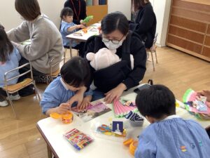 「僕、私もお手伝いするよ!」とお友達もハサミで飾りを切ってお手伝いをしている姿も…☺