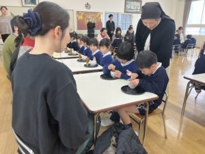 昨日と今日の2日間、年長児が感謝のお茶会を行いました。