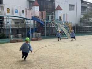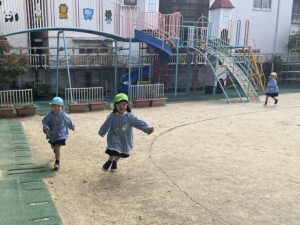 今週の年少さんは、かけっこを久しぶりに行いました。