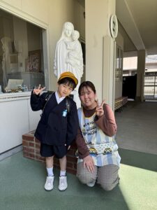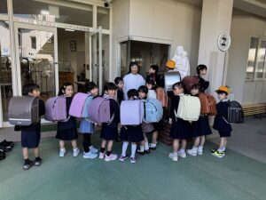 今日は小学校の入学式があり、卒園児のお兄さんお姉さんが入学式終わりに幼稚園に来てくれました。
