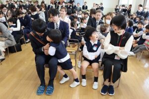保護者の方と手を繋ぎ、ドキドキしながら入場しました。