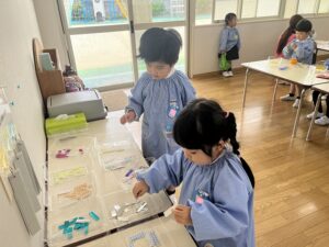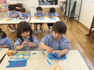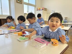今週から園生活が始まり、ドキドキしていた年少さん。