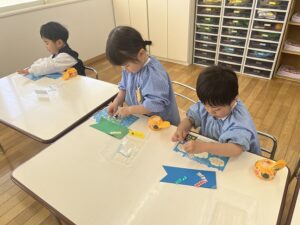 来週は、こいのぼりの目と口を貼りますよ!楽しみに幼稚園に来てくださいね♡
