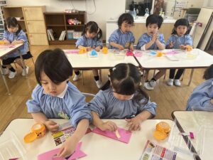 「四枚とりましょう!」と先生から言われたら、「1,2,3,4,」と数えながら取ることができましたね✨