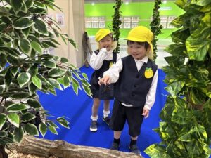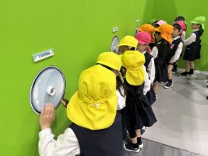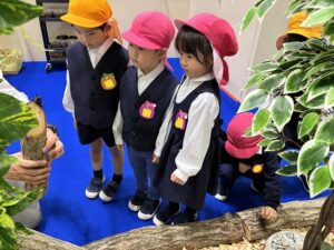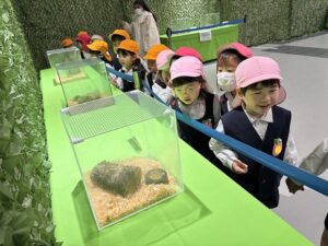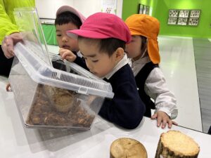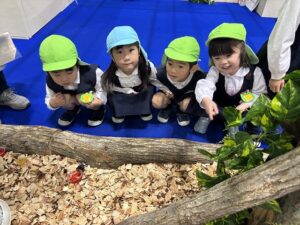 「どんな虫がいるかな?」「本物かな?!」などと、朝からワクワクの子どもたち。