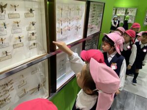 中にはたくさんの標本や巨大昆虫の模型が展示してあり、子どもたちは大喜び。